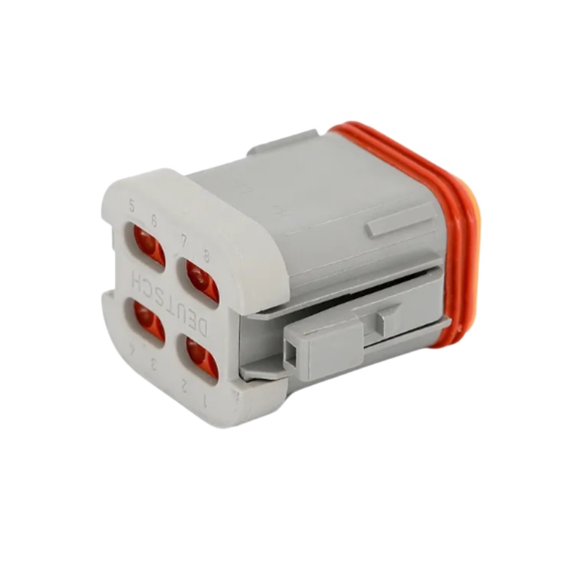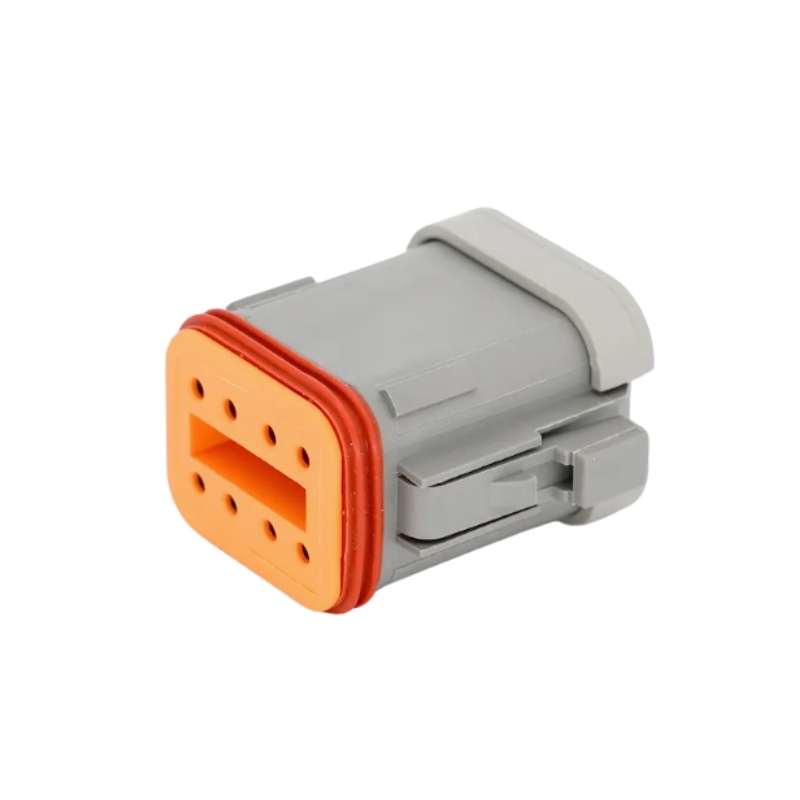 بدنه آن از نوع Housing for Female Terminals بوده و برای نصب ترمینالهای مادگی طراحی شده است. رنگ طوسی بدنه مطابق استانداردهای صنعتی به تفکیک سریع سوکتها در سیستمهای سیمکشی پیچیده کمک میکند. سوکت DT06-8S-E003 دارای 8 موقعیت اتصال است که امکان انتقال چندین مسیر برق یا داده را فراهم میسازد. این ویژگی برای کاربردهای پیشرفته مانند سیستمهای ECU، سنسورها، ماژولهای کنترلی و تجهیزات روشنایی بسیار مهم است. این کانکتور از نوع Sealable بوده و همراه با rubber seal، rubber ring و wedgelock عرضه میشود. وجود آببند لاستیکی و رینگ محافظ از نفوذ گرد و غبار، رطوبت و آلودگی جلوگیری می کند و Wedgelock با قفل کردن دقیق پینها، مانع از جابجایی یا جدا شدن آنها در اثر لرزش میشود.